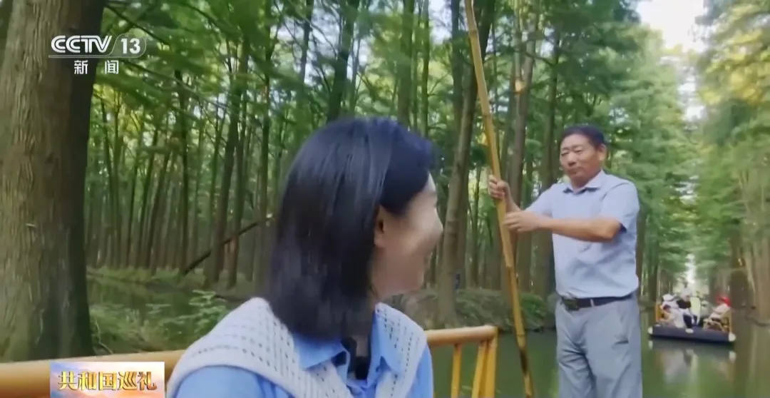 撐船師傅:我們這邊原先鳥(niǎo)不多,種出來(lái)這片森林以后,鳥(niǎo)開(kāi)始增多了,現(xiàn)在有十幾萬(wàn)只。水中有魚(yú),林中有鳥(niǎo),這里是一個(gè)森林氧吧,負(fù)氧離子非常高,每年我們接待80萬(wàn)人左右——水上森林走一走,想活多久就多久!